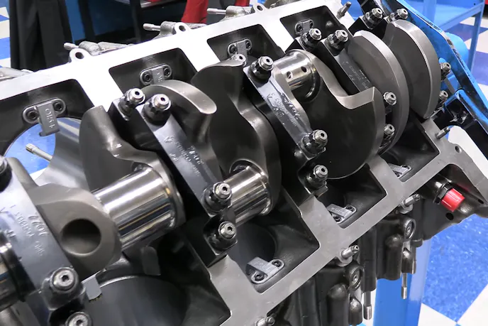 A Bryant billet crankshaft, identical to a Cup crankshaft, but with a longer 3.600-inch stroke is used in this combination since there is no rulebook on the street. The block and crank use 2.00-inch main journal diameters to reduce bearing speed, and due to the additional stroke, the R07’s piston oil squirters need to be removed.