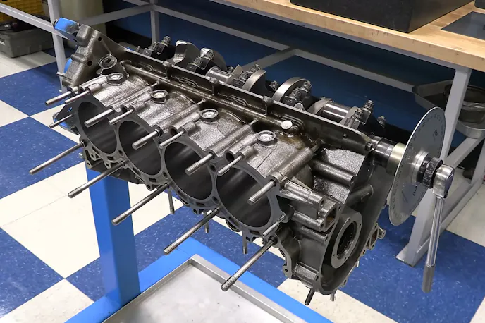 The block features an extra 0.100-inch of bore spacing, coming in at 4.500 inches instead of the traditional small-block Chevrolet 4.400 inches. The bores have been opened up .005 inch from the NASCAR maximum size of 4.185, which between the wider bore spacing and the CGI material, poses no problems at all.