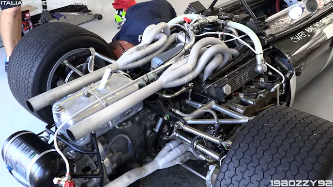 Based heavily on the Lamborghini Urraco V8 engine, the V16T shares a number of parts with it, including cylinder heads. Instead of two eight-cylinder heads, the design team opted for four of the proven Urraco dual overhead camshaft cylinder heads. That adds up to eight camshafts and 64 valves. The output of the beast was rated at 540 horsepower at 8,000 rpm and 400 lb-ft of torque at 6,000 rpm.