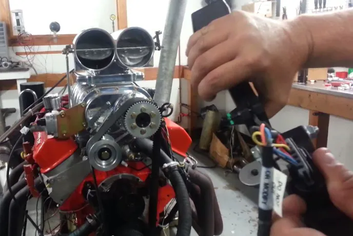 “Bad Bob” is a 572 cubic inch big-block Chevrolet engine set up with a 10-71 supercharger, destined for use in a ’57 Chevrolet street car. Typically, a supercharger like this will use cable-driven throttle control, but that’s not the case in this applicaiton, says tuner Brian Macy of Horsepower Connection in Lake Havasu City, Arizona.
