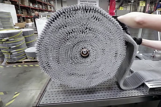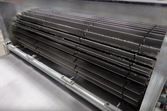 K&N’s air filters are made using a high quality cotton fabric material, similar to medical-grade gauze, which is then encased in an aluminum mesh to reinforce its structure. This process is completed using a machine that was designed and built in-house and was first introduced in 1972. The rolls of material are pulled together through this machine, which then pleats the material into shape.