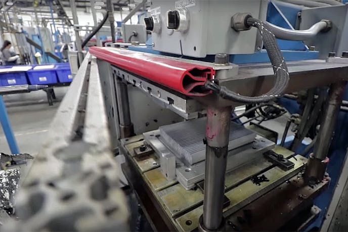 For panel filters, the media is carefully placed onto an aluminum mold that is placed into a machine. Once properly seated, the machine places the mold in a heated chamber where the liquified rubber is then injected into the mold and then cured.