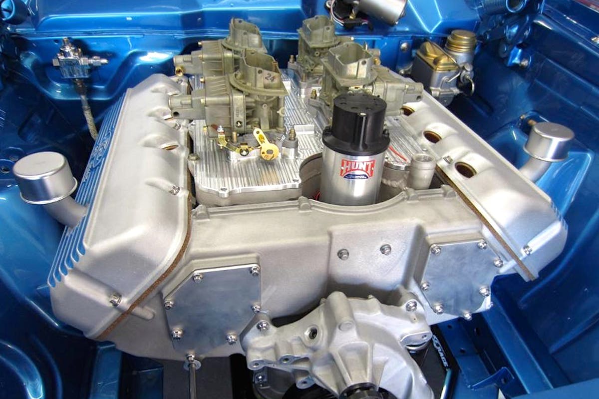 Note the detail of the intake and the vintage Le Mans-style bowls on the Holley carbs.