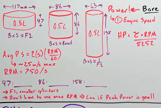 There are a lot of factors that determine maximum engine speed, but for the purposes of this hypothetical discussion, Fenske chooses to use piston speed as the ultimate limiting factor of potential hypothetical engine speed.