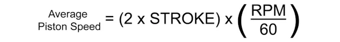 “By decreasing your stroke length, you’re able to increase your RPM limit. Automotive engines don’t typically exceed 25 meters-per-second. Once you exceed that limit, you start to run into issues. We can calculate average piston speed for the different examples fairly easily using the following equation:”