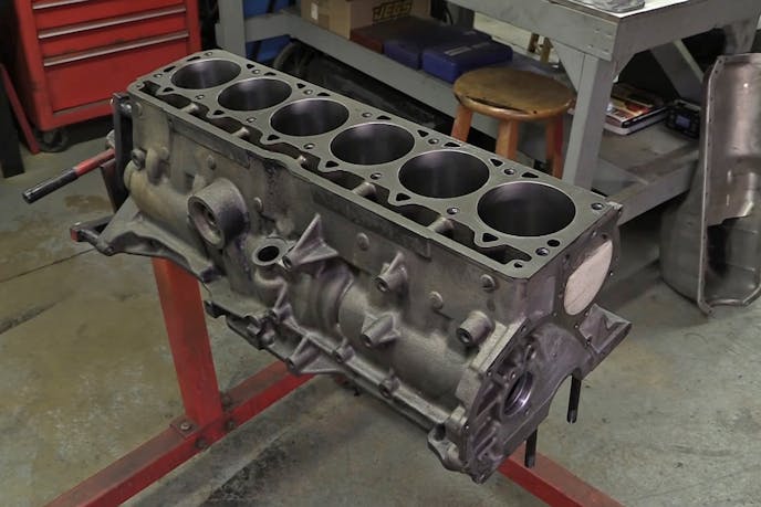 After fitting a set of 1/2-inch ARP main studs and King main bearings, Newcomer dropped in a 3.895-inch crankshaft out of an older 4.2-liter Jeep engine to get a total displacement of 293 cubic inches – or 4.8 liters. The pre-1980 crankshaft is fully counterweighted, which is especially important in a long inline-six crankshaft.