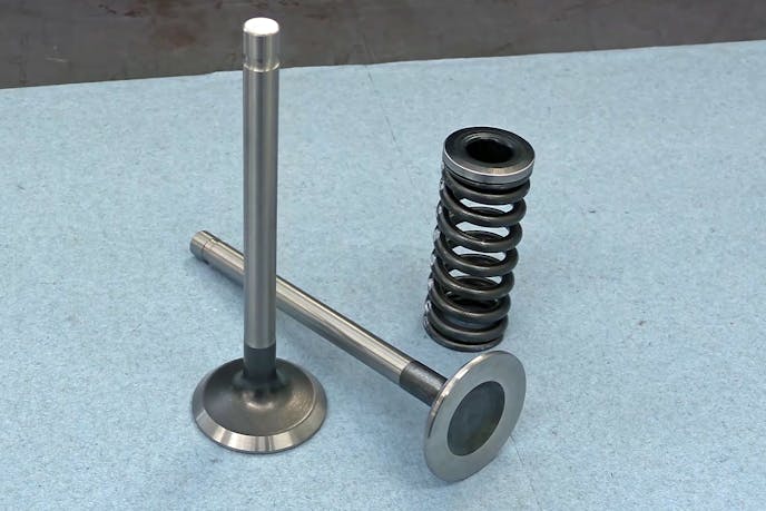 The flathead uses the same size intake and exhaust valves — both 1.500 inches in this case — and Isky valvesprings with 80 pounds of seat pressure and 200 pounds of open pressure. Another oddity of the flathead is the valve guides. They are O-ringed devices that fit into the bore in the block and are retained via a spring clip. The valve, spring, guide, locks, and retainer are all assembled outside of the engine and installed as a single unit.