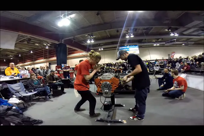 At the recent World Of Wheels show in Calgary, the Zeebs-sponsored “Battle of the Techs” engine build competition took place over the four-day event. This video is an interesting look at the choreographed dance that occurs when two people set out to build an engine within a prescribed time – this particular team is from Sait Polytechnic School of Transportation.