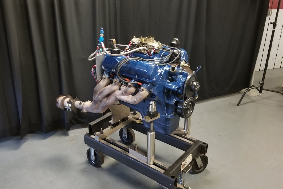 “We wanted to make it look like it got pulled out of a station wagon, or a pickup truck,” says Rabotnick. “We used factory Ford valve covers painted blue, we painted the cylinder heads and the intake manifold blue. The stock water pump from 1968 is painted blue, and the oil pan is a Ford performance deep pan out of the Ford Performance Parts catalog from the 1960s. Externally, there are no new parts showing on the outside of the engine. It looks pretty damned plain.”