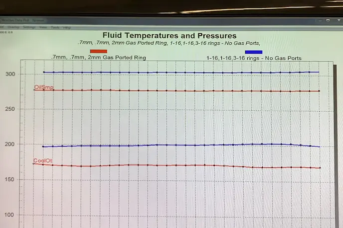 “We noticed that the oil and water temperatures were coming up faster than usual,” says Speed of the initial run-in session with the thicker rings. “I thought, ‘Hmm. That’s different. It’s never done that before.’ So we actually checked to make sure everything was good with the oil and water systems. The next cycle, sure enough, it happened again. So now the question is, ‘why?’”