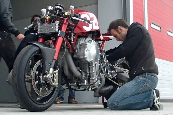 While technically the “Nembo 32” is the name of a prototype motorcycle, it’s engine it could be called one of the Stranger Things about the project (you’ll get that bad pun in a second). You see the bike’s air-cooled inline-three-cylinder doesn’t come across as all that odd on paper, until you see that it’s mounted upside down in the chassis.