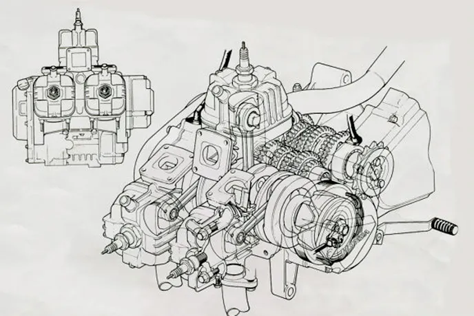 While those numbers might seem low, that calculates out to almost 200 horsepower per liter from a naturally aspirated engine with an 8.0:1 compression ratio. Oddly, enough, the single-cylinder engine “bank” was often jetted differently than the two-cylinder bank, which probably exacerbated the engine’s inherent instability, which was attempted to be countered by using a significantly heavier connecting rod on the single-cylinder side. Unfortunately, the engines vibratory nature was hard on components and the bike itself wasn’t a commercial success, relegating the engine to a mere footnote in history.