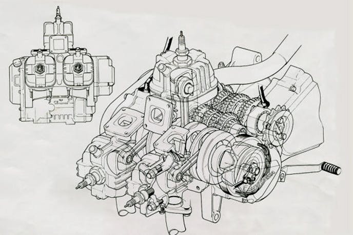 We’ve saved the best (read: weirdest, coolest, rarest, most interesting) three-cylinder engine for last, the Honda MVX250F engine. A two-stroke 90-degree V3 (yes, V3) the engine was designed for the 1983 MotoGP season. Honda has never been afraid of trying weird stuff when it comes to it MotoGP efforts, and this 249cc engine proves it. With a 47mm (1.850-inch) bore and 48mm (1.890-inch) stroke, the tiny engine made 49 horsepower at 9,000 rpm and 23 lb-ft of torque at 8,500 rpm.