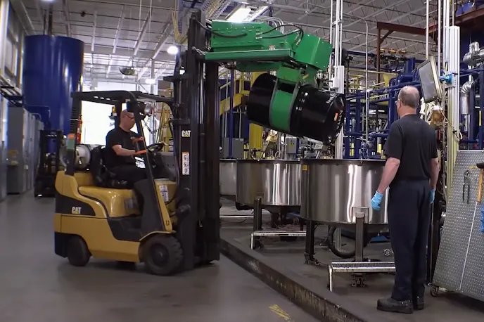 Synthetic oil starts life as one of a variety of inorganic base stock products. AMSOIL receives these base stock in large quantities by rail, at what they call the “Indoor Rail Spur” – an indoor train depot filled with liquid offloading equipment. “There are six months of winter here in Superior, Wisconsin,” says Davis. “Can you imagine all the ice and snow that would be covering these pumps? We would have to move every time it snows. Plus, the employee safety risks of having to wrestle these big anaconda hoses in the poor weather.”