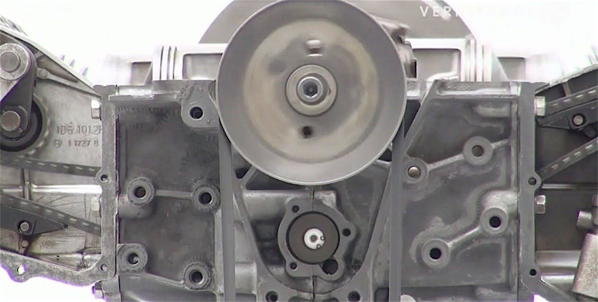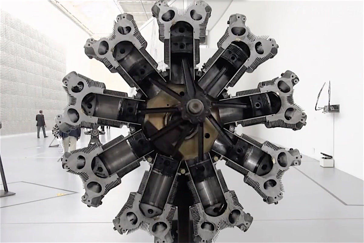 Among the displays in Bayrle’s installation are engines from a 6-cylinder liquid-cooled Porsche, VW Beetle, Moto Guzzi motorcycle, and a 9-cylinder radial. These engines are tactfully cut, exposing cylinder cross sections, valvetrain components, and bottom ends. We are treated to the dynamism of the engine as it operates at low RPM and exposed to the world.