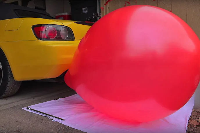 First, some of you might be wondering if securing a balloon to your exhaust is harmful to the engine. While we don’t ever see the need for you to do this yourself, Fenske addresses this concern by pointing out the fact that a balloon only needs slightly higher than atmospheric pressure to inflate. So the pressure inside the balloon will always remain lower or equal to what is coming out of the exhaust.