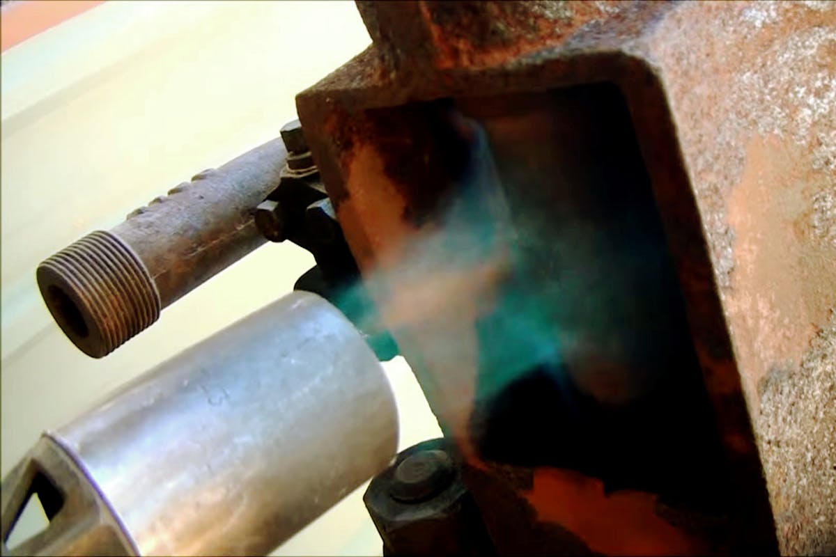 The oil engine shown above–which will keep you enthralled for the entire eight minutes and eight seconds of the video–is considered a hot bulb engine, which requires the fuel source, kerosene in this instance, to come into contact with a hot metal surface inside the bulb. That’s the torching process in the beginning.