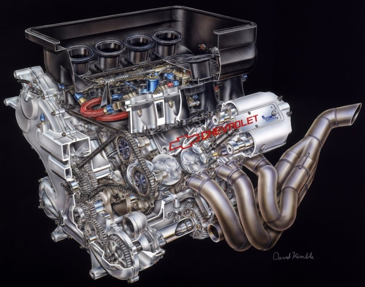 “IRL cars only ran on ovals then, so they had a very narrow powerband, from 8,000 to 10,250 rpm. Because of the small displacement, they did not produce a lot of torque. The cylinder heads came from GM already CNC ported and did not require any enhancements. Many of the engine builders deviated from GM and had their own camshafts ground, but the largest horsepower improvement of the Ilmor engine came from their proprietary intake manifold and camshaft package,” says Smidt. “Even with all of these changes, there was probably no more than 20 horsepower difference between the best and worst of the different engine shops. Part of the challenge was to build an engine that made adequate power and was able to run for 500 miles nearly wide open throttle, which is not as easy as it may seem.”