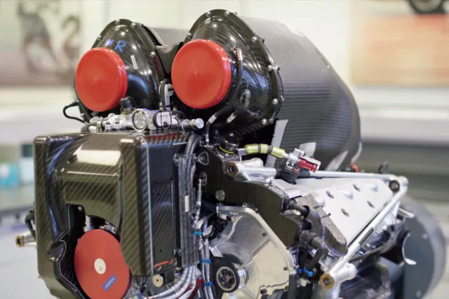 Owens is quick to credit the hybrid system for doing its part in achieving such impressive efficiencies. The Energy Recovery System (ERS) consists of two collector systems, which charge batteries and then turn that electrical energy into mechanical energy via an electric motor attached to the engine. One kinetic collector (MGU-K) harnesses energy from the brakes, while the more interesting one – the MGU-H – extracts energy from the exhaust gasses, via the hot side of the engine’s turbocharger.