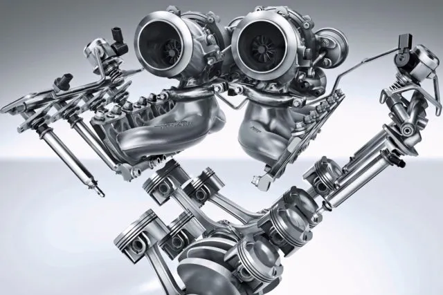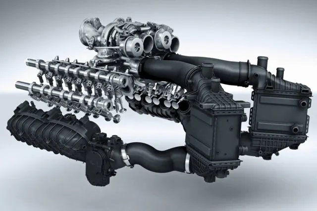 We come across some really unique items as we scour the web to bring you the freshest engine news possible, and Mercedes’ “Hot-Inside-V” engine definitely falls into the category of unique, as discussed in this video from Engineering Explained. Traditionally, a V-configuration engine has the intake ports towards the centerline of the engine, and the exhaust ports pointing towards the outside of the engine. A centralized intake plenum feeds the intake ports, and individual exhaust manifolds usher out the spent gasses. Whlie there have the been an insane number of plenum design theories over the years, they have almost always fed from the center, and exited out the sides.