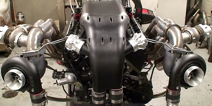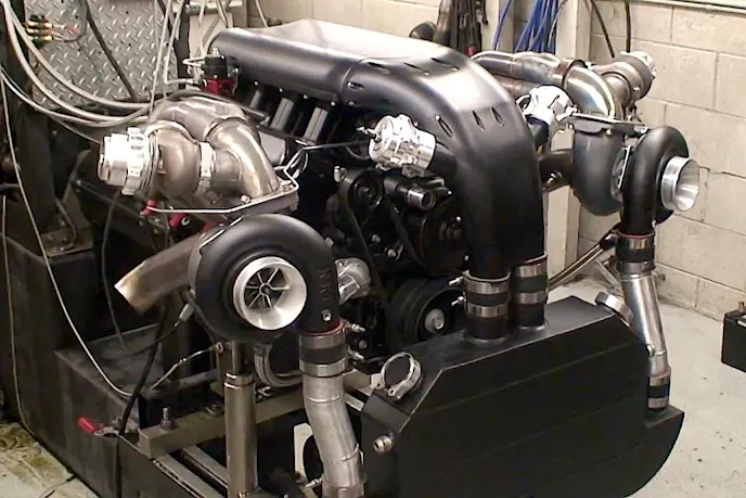 Boost is provided with a pair of NRE 72mm mirror-image turbos.