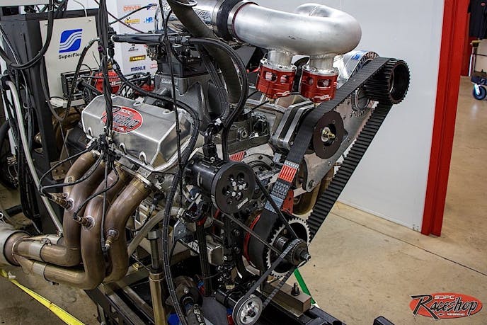 While ProCharger fans have been drooling over the new gear-driven RaceDrive for the F-1x-12 supercharger, some prefer the time-honored belt-drive side-slinger arrangement. This 2,000-horsepower, all-alloy 540 ci built by SDPC Raceshop is destined for a TNT-built Top Dragster where real estate can be scarce.