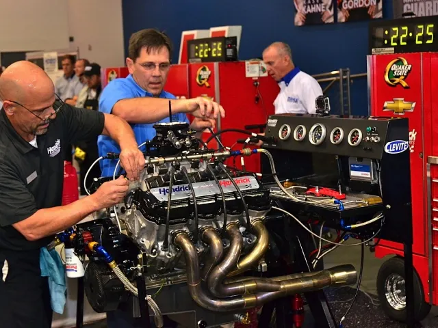 The competition pairs 12 master technicians from the Hendrick Automotive Group with 12 members of the engine team at Hendrick Motorsports. After qualifying rounds over two days, the two teams with the best preliminary engine-build times go head-to-head in the championship round. The overall goal is to have the fewest errors in the quickest time.