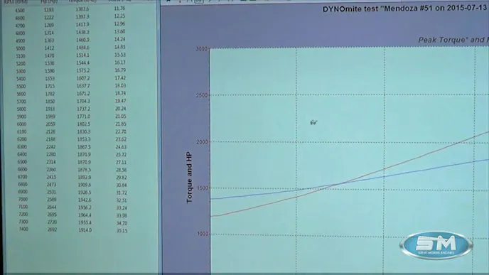 Even with the dyno needle stopping at 2,720 horsepower and 1,964 pound-feet of torque, Morris feels there is still a tremendous amount of room for Mendoza to grow with this engine package. The engine was only run to 7,400 rpm, as there is simply no need to run it any higher in the RPM range; the moderate RPM levels will promote a long, healthy life in this application. More boost, an upgrade to a dry-sump oiling system, and other upgrades are possible in the future. We can see the dyno software displaying 3,000 horsepower already…