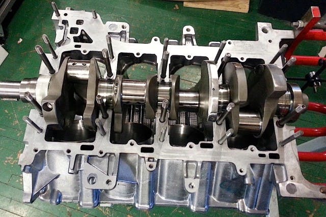 Lubrication upgrades include an extensive crank scraper system, windage screens adjusted to clear longer stroke, a Patterson oil separator and a Tilton pump to return the oil back to the motor. The oil system was also modified to divert more oil from the head back to the main and rod bearings.