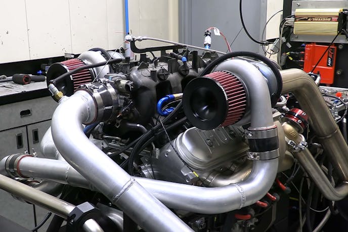 Sealing those heads to the block are a set of ARP head bolts and a factory .051-inch head gasket. Pay attention there, as that will play a part later in the article. A Holley EFI HP system was used to control the combination, since it was available at the dyno, is easy to use, and has plenty of ability to control the turbo combination.
