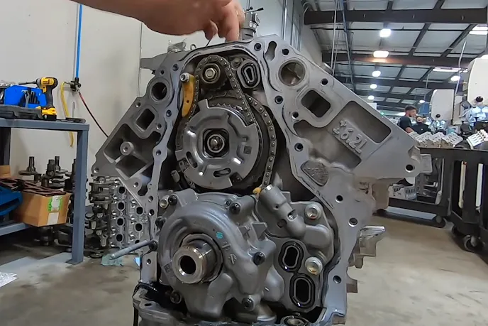 Once they got the engine, Texas Speed recorded the teardown, which provided our first look at the inside of an LT2 in the wild. As the teardown starts, we see that it uses the usual LT rocker arms, but an upgraded direct injection fuel pump.