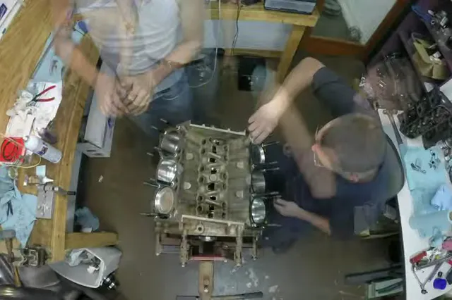 Wagner’s Flight of the Valkyries, better known as the “Apocalypse Now” theme song, provides the soundtrack, and it’s quite fitting; as the tune builds to a crescendo, so does the engine to come together into a finished piece and find its home between the car’s fenders..