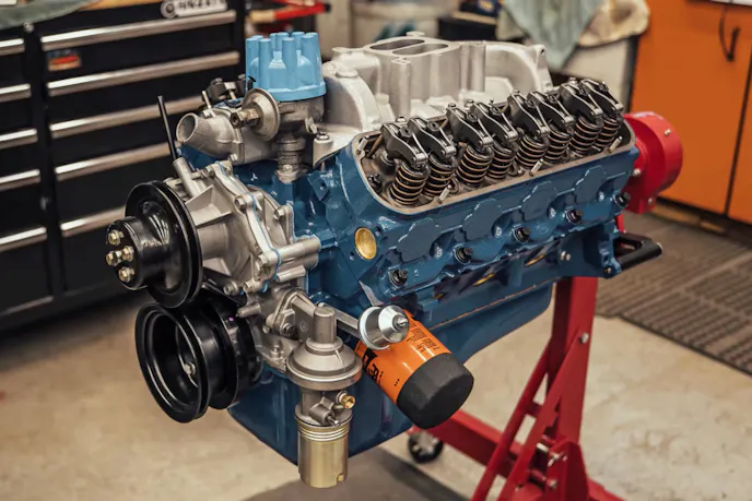 As the engine goes back together, it’s reminiscent of a Hot Rodders of Tomorrow competition, but with a small-block Ford. The team at Redline Rebuild went with some new, period-correct upgrades during the reassembly, like an Edelbrock F4B intake, Some Holman-Moody valve covers, new Comp Cams camshaft and valvetrain components, a Holley four-barrel carb, and a set of headers in order to bring the power up to an estimated 310 ponies.