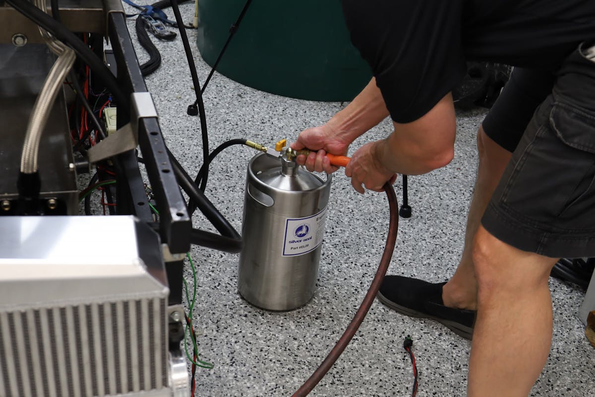 With a freshly rebuilt engine, it’s a really good idea to pressure lube the engine with a dedicated pressure device. Summit sells an inexpensive pressurized container (P/N SUM-CSUM-9166) that can be filled with enough oil to pressure lube the engine before starting. Melling also sells a very nice pressure lubing tank (PN MPL-201). If you feel adventuresome, you can make your own oil pressure pre-luber for much less money using a 2-1/2-gallon plastic bucket and lid fitted with a small-block Chevy oil pump bolted to the lid. Extend the pickup to the bottom with 5/8-inch rubber hose and add a pressure outlet fitting from the pump to allow connecting to the same pressure port in the block.