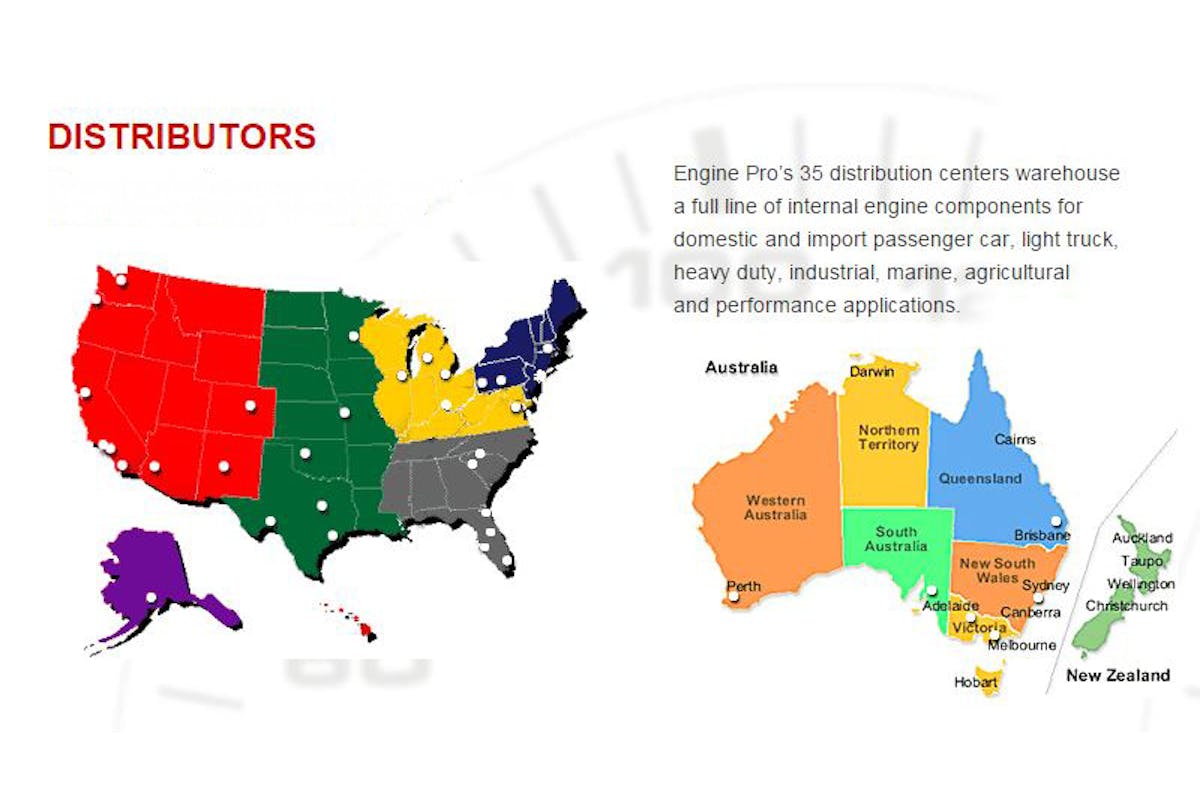 Through their 35 U.S. distribution centers, and another in Australia, the Engine Pro team is positioned to provide a complete lineup of internal engine components for racing, domestic and import passenger car, light truck, and even heavy duty, industrial, and marine applications.