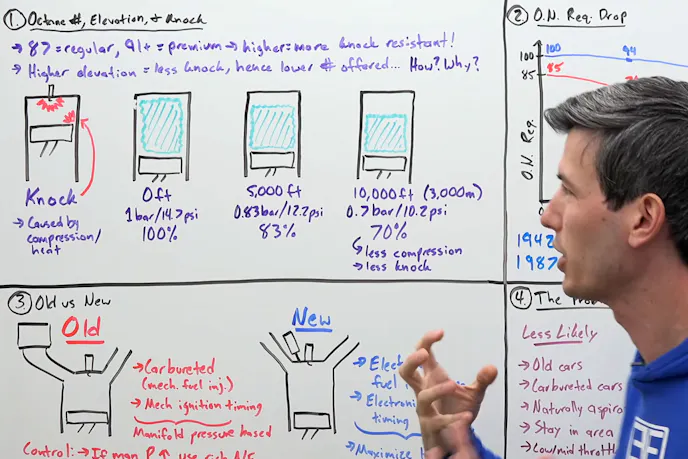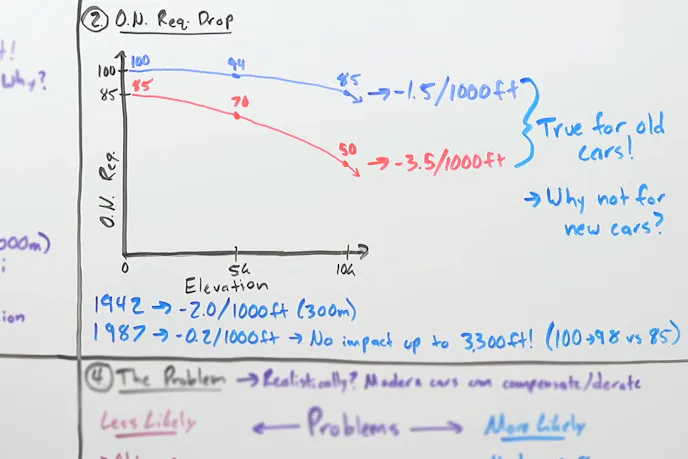 So, case closed, right? Wrong. While 85-octane might have been tolerated by older, less efficient engines, in modern engines, it can pose an issue. As Fenske points out in his video, he found studies showing that “modern” engines (in quotes, because the study was in 1987) saw a reduction in tolerance to lower octane as elevation increased, by a factor of 10.