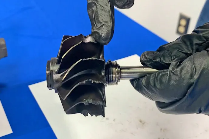 “There is a surprisingly high amount of foreign object damage that occurs with turbochargers. It’s the easiest thing to spot and should be one of the easiest things to prevent,” says Flynn. “Any time foreign object damage occurs it will start and show sign on the inducer of the compressor and/or turbine wheel.”