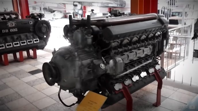 Known for their unique engine designs, Daimler-Benz built the prototype DB 604 24-cylinder 46-liter square (5.315-inch bore and stroke, as well as even 90-degree bank angles) engine. With a two-speed supercharger, the prototype developed 2,500 horsepower but was cancelled in 1942.
