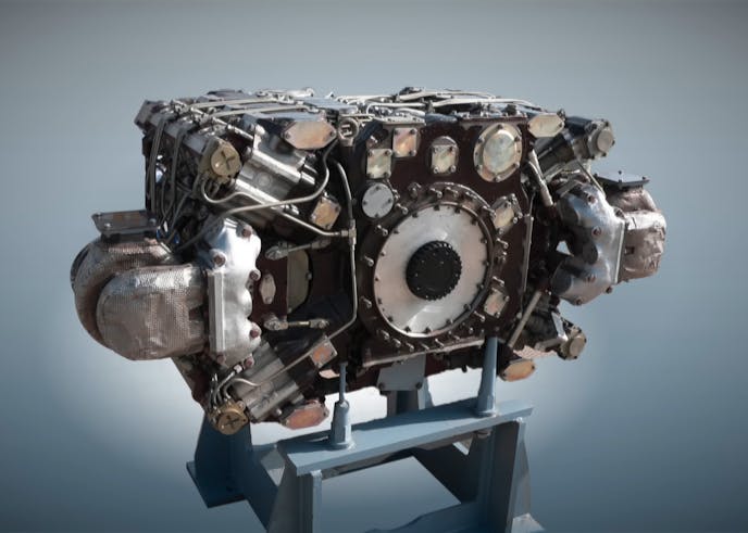 However, in 2015 an X engine did make it into production — once again as an implement of war. The Chelyabinsk Tractor Plant (or CTZ-Uraltrak) 12N360 A-85-3A turbo diesel engine powers Russia’s newest tank design, the T-14 Armata. It is an X12 design that produces 1,500 nominal horsepower at 2,000 rpm. This modern rendition of the X engine is on the flatter side of square, with 60-degree and 120-degree complementary bank angles, and is force-fed by a pair of turbochargers.