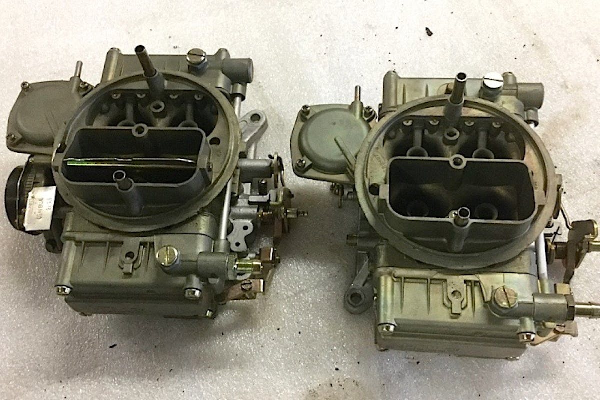 Dozens of rare, NOS and original parts were available. From left, 409 valve covers for $1,500; Z11 2-piece intake manifold and carburetors for $5,200; Hemi magnesium intake manifold for $1,400; Ford 427 carburetors for $1,600.