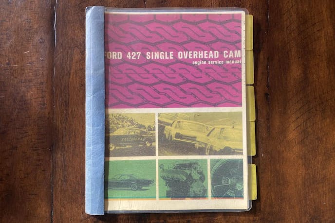 While most know that engines do not like to sit for extended periods of time, the seller reports that the engine still turns over by hand. The time capsule still features the cast-iron cylinder heads, chain-driven overhead camshafts, finned magnesium valve covers, high-rise aluminum intake manifold, Holley four-barrel carburetor, and a dual-point Autolite distributor and ignition components. Also included in the sale are the Holman-Moody catalog, a workshop manual, and inspection and identification tags for those looking to further authenticate the engine.