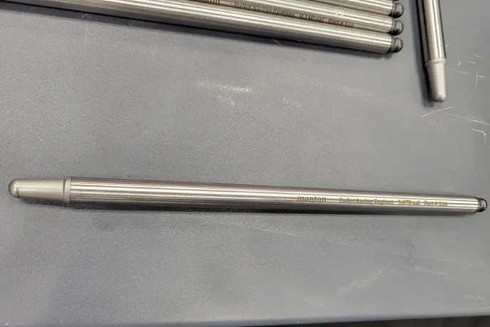 Riding on the lobes of the camshaft are a .903-inch-diameter hydraulic-roller lifters. These units are Johnson short-travel pieces that will handle serious RPM — far more than we are planning on turning this engine. Riding on top of those lifters are some seriously impressive pushrods from Manton. They are a multiple-taper design that tapers from 7/16 inch to 3/8 inch in diameter, with extended 5/16-inch ball tips on either end. Manton’s design is more than just for clearance, as they say the taper design makes the pushrod stiffer than a straight-wall design of the same size.