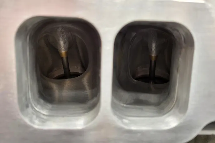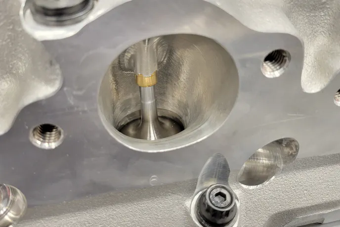 Since the heads come bare, we were able to get creative with our valve selection. Working with Ferrea Racing Components, we decided on 11/32-inch stem, 2.450-inch-diameter titanium intake valves, with a host of small details built into them. Bacalis specified every measurement, including the radius, margin, and back cut angles. For the exhaust valves, Ferrea and Bacalis decided on Inconel valves. Slightly heavier than titanium, but far more heat resistant, the superalloy valves have the same 11/32-inch stem diameter, but a 1.850-inch diameter valve head. The Inconel valves will hold up incredibly well in all conditions, while this engine is making over 1,000 horsepower.