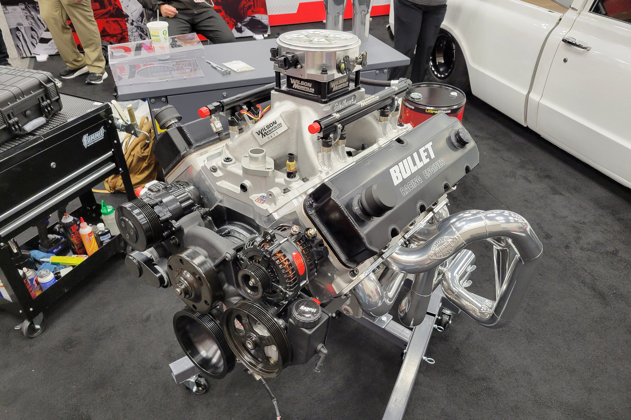 Sitting atop the carb pad is a 2-inch open spacer from Wilson. The idea being that any increase in plenum volume in an EFI application is a positive. Sitting atop that spacer is a Holley 2,000 cfm four-barrel throttle body. CNC-machined from billet aluminum, the 4500-pattern throttle body features four 2.25-inch throttle bores with a progressive linkage. That means that it will not only drive better on the street, but also offer all the airflow the engine can handle at wide-open throttle.