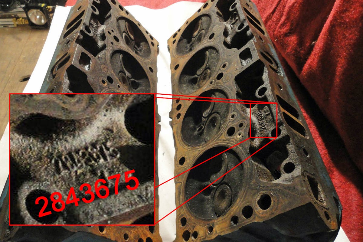 The casting numbers for small-block Mopar and big-block Mopar are a seven-digit number, which is raised, and usually found in one of two locations. The first would be on the top of the intake runner, under the valve cover. The second location is on the underside of the intake runner on the cylinder head.