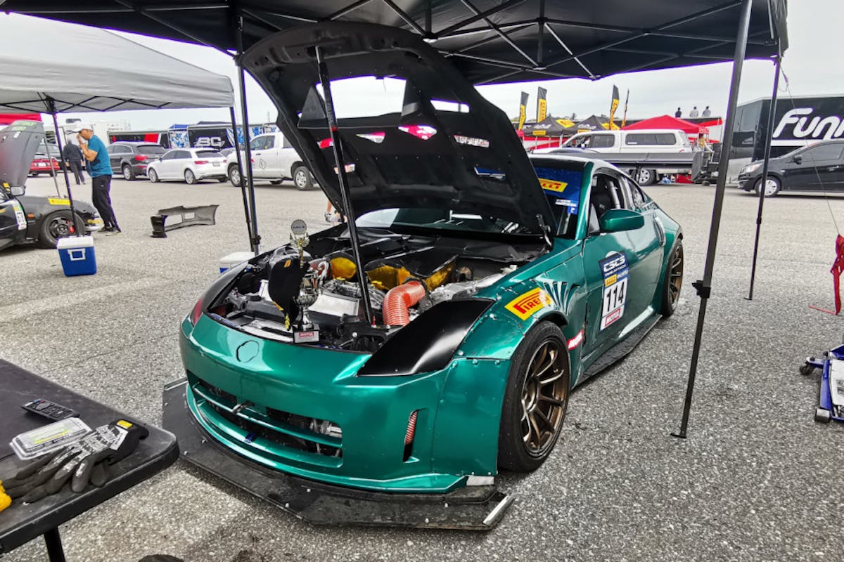 Perhaps the Nissan VQ-series engine doesn’t get the credit it deserves. While it’s not known for making dragster-levels of power as easily as a VR38DETT, it’s still a stout, light, and compact engine with plenty of potential. One brave privateer racer wanted to explore the limits of this oft-derided V6, and after a year of restricted running in Koni Challenge with his 350Z, he turned it into a sprint-race and time-attack car. No longer shackled by stringent rulebooks, he pushed the VQ engine to its limit.