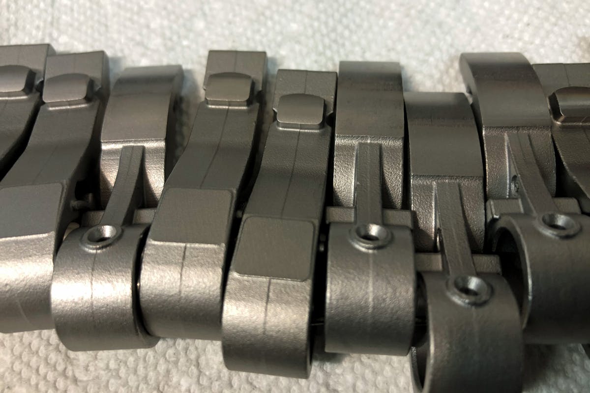 The S54 uses a unique-for-BMW, finger-follower rocker arm mounted on a rocker shaft. This provides valve opening acceleration and rocker ratio multiplication, but, according to some, can be a problematic wear item. We’ve seen success in using WPC Treatment on OEM rocker followers, though some may opt for a DLC coating.