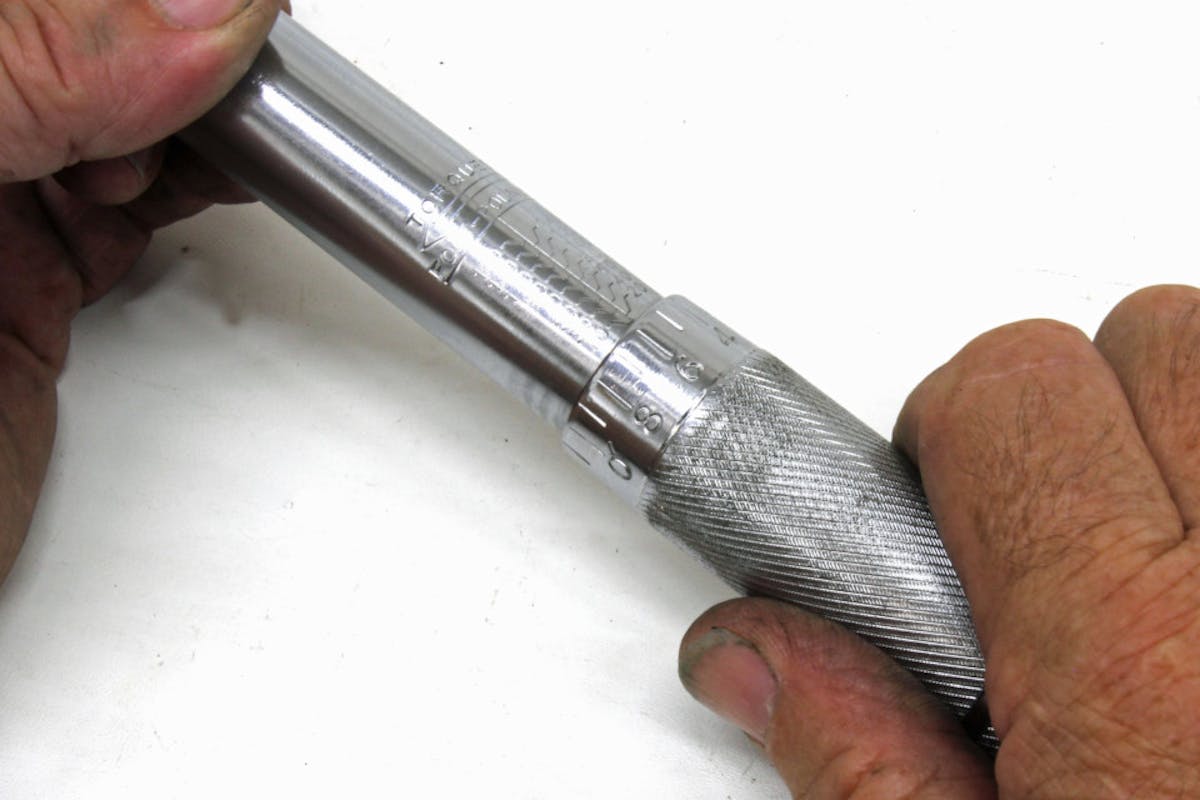 For clicker style torque wrenches, always return the handle to a light setting like 20 lb-ft. This removes stress from the internal spring. We did a test with our friends at Cornerstone Metrology in Van Nuys, CA one time, and after leaving a clicker torque wrench set at 65 lb-ft for two months, accuracy dropped by 5 lb-ft.