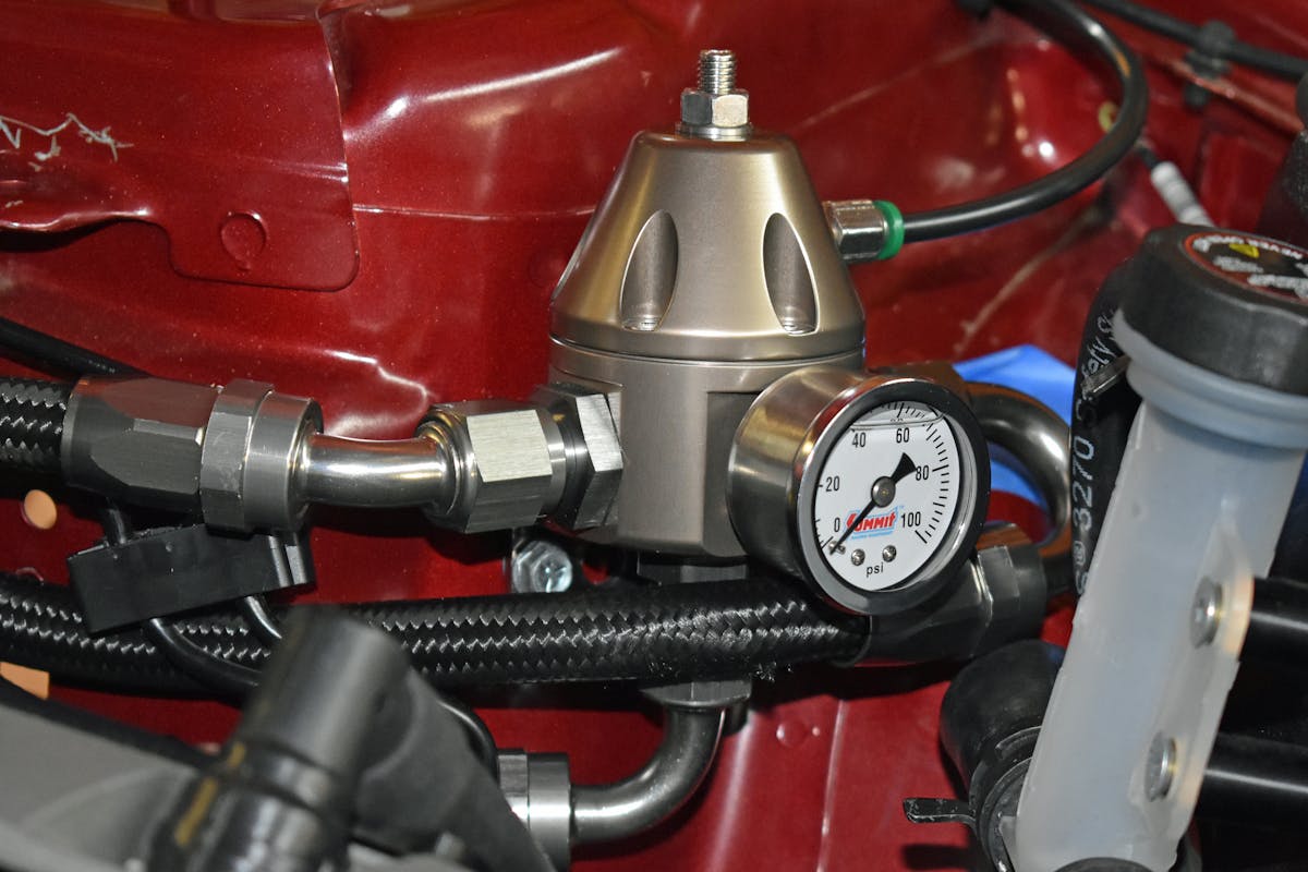 We also used a DeatschWerks DWR2000 Fuel Pressure Regulator. Advertised as being 2,000-horsepower-capable, the DWR2000 regulator is made out of anodized 6061 aluminum with stainless-steel hardware. A nitrile diaphragm makes for the highest fuel compatibility and will flow in excess of 1,000 lph.