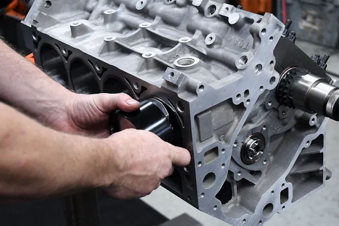 The rotating assembly rides on King Engine Bearings XPC-coated tri-metal bearings. The pMaxKote polymer coating on the XP-series main and rod bearings helps not only reduce friction, but also helps prevent oil cavitation and resist damage and seizing in the case of temporary oil starvation.